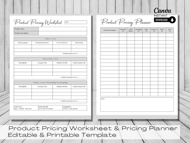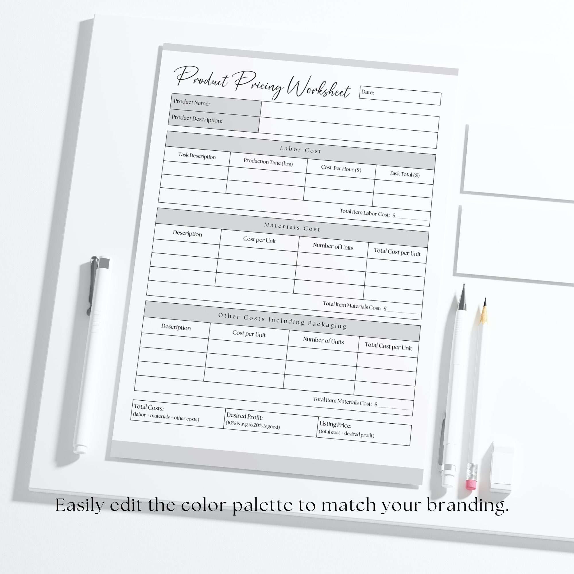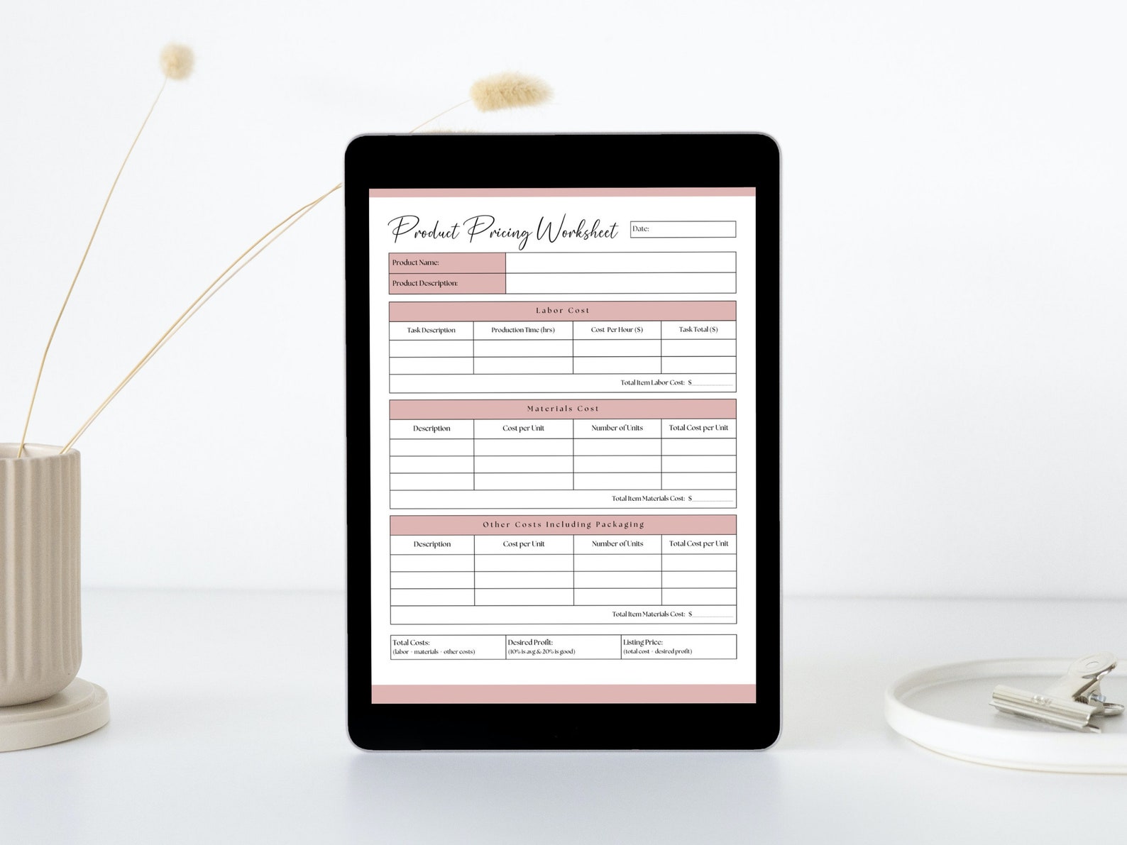 Editable Product Pricing Template Item Pricing Planner Etsy