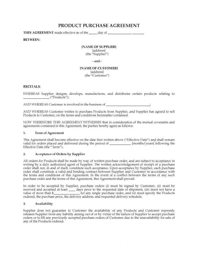 24 Wonderful Picture of Product Purchase Agreement Template