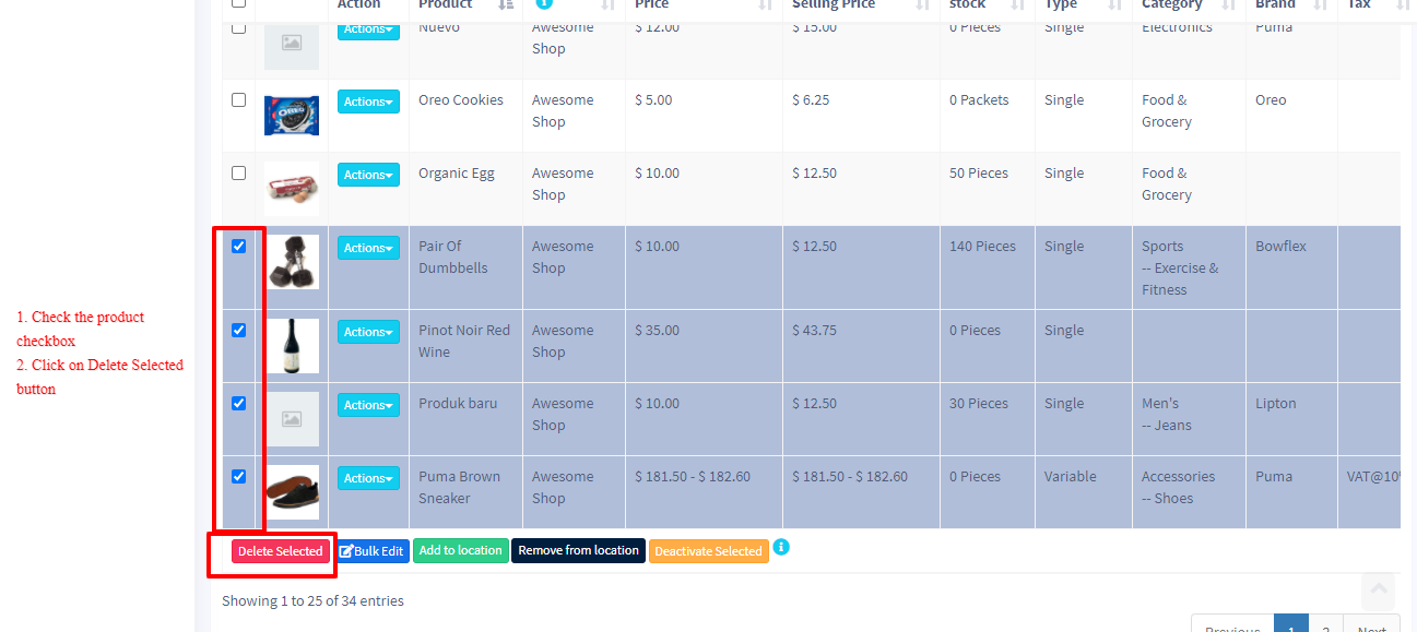 Delete Product (Bulk delete) Ultimate Fosters