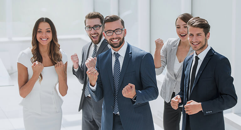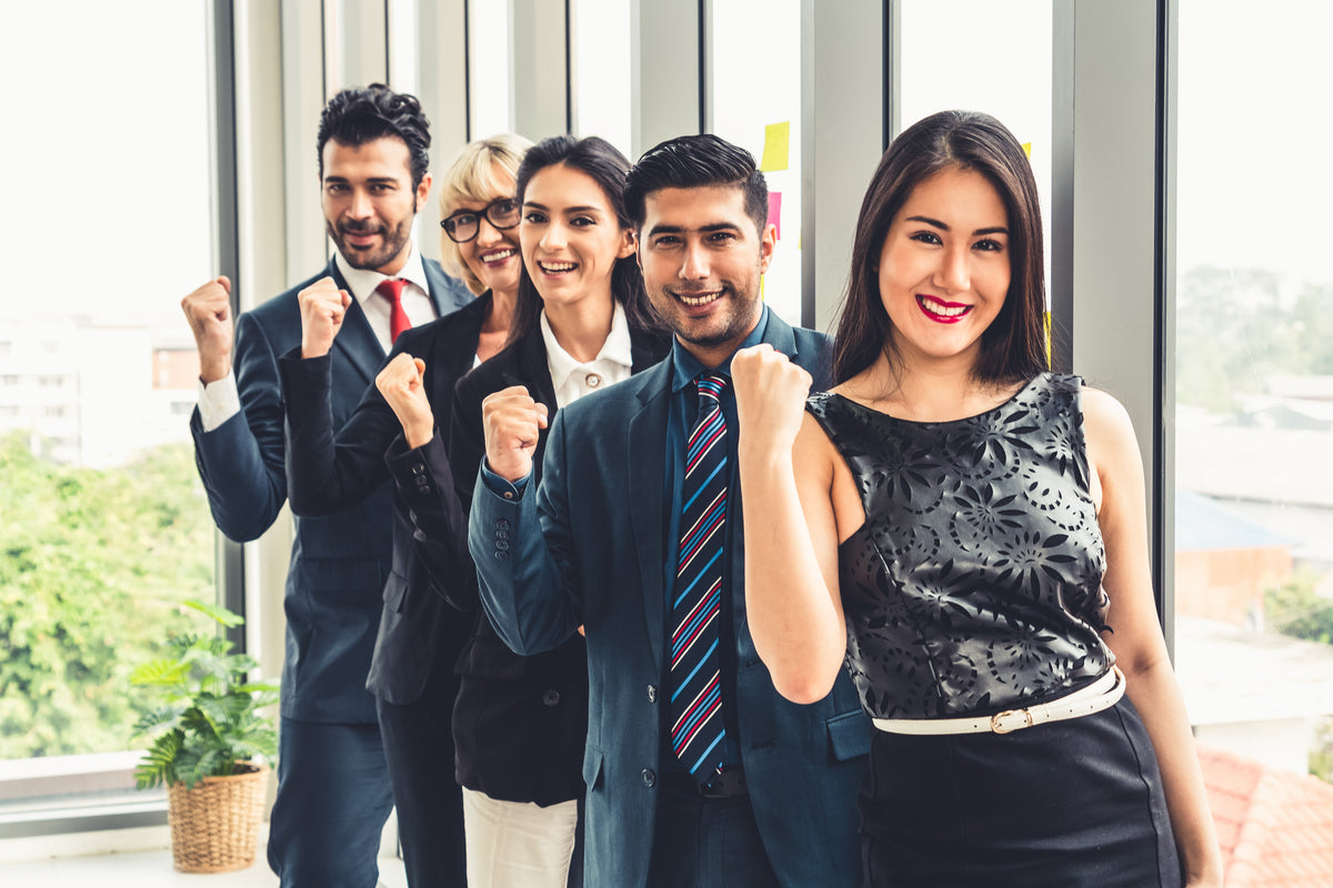 Premium Photo Cheerful group of workmates celebrating business