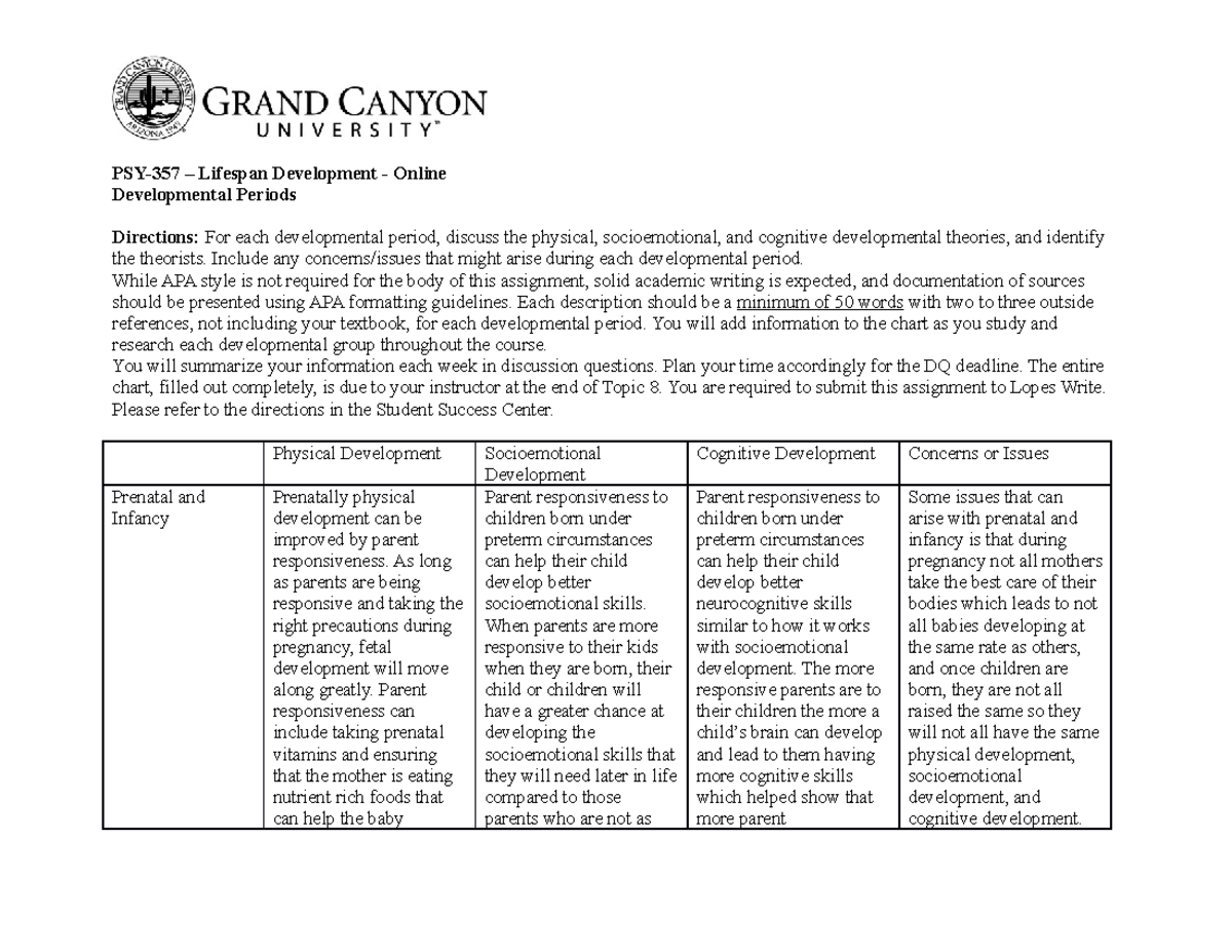 Developmental Periods Chart PSY 357 Lifespan Development Online