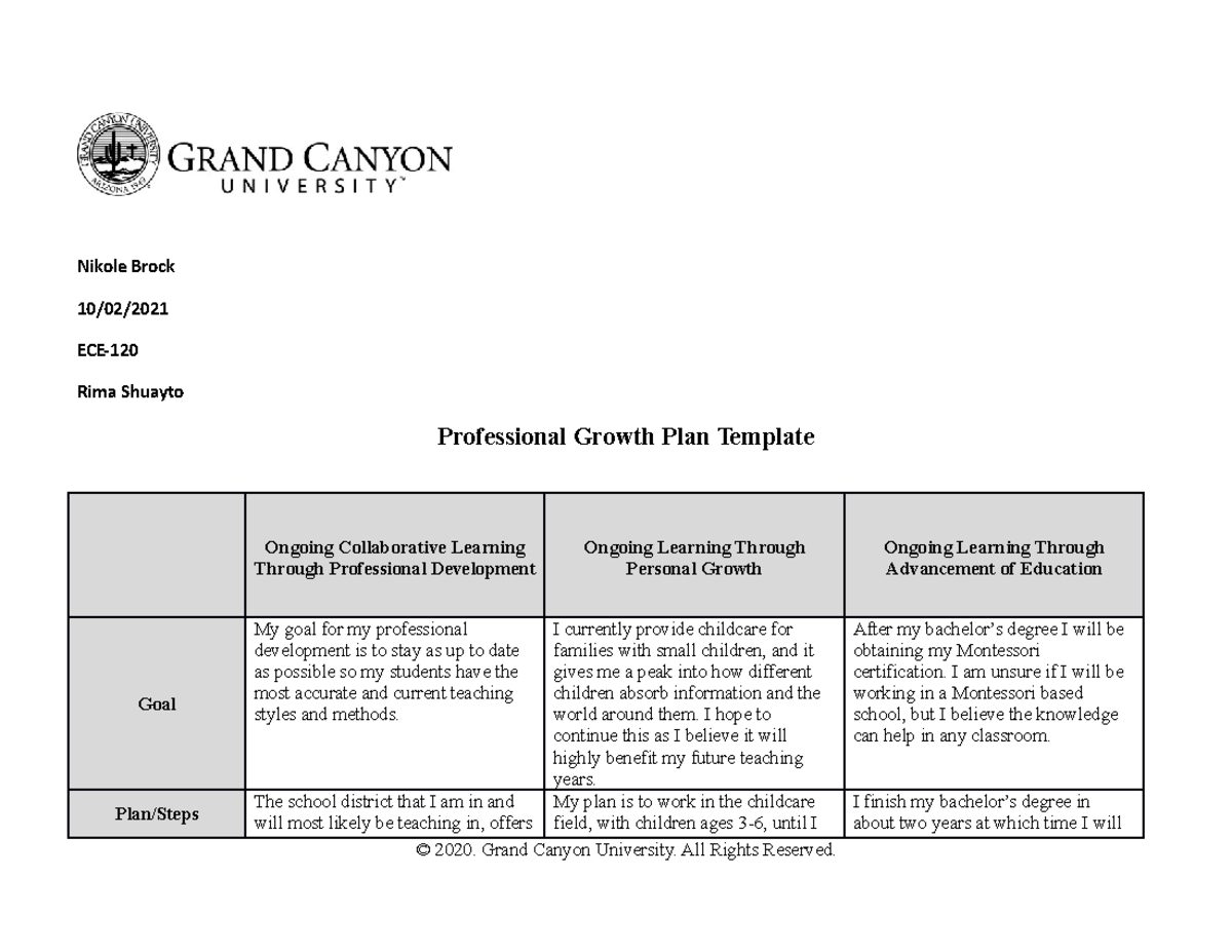 ECE 120 Professional Growth Plan Template Professional Growth Plan