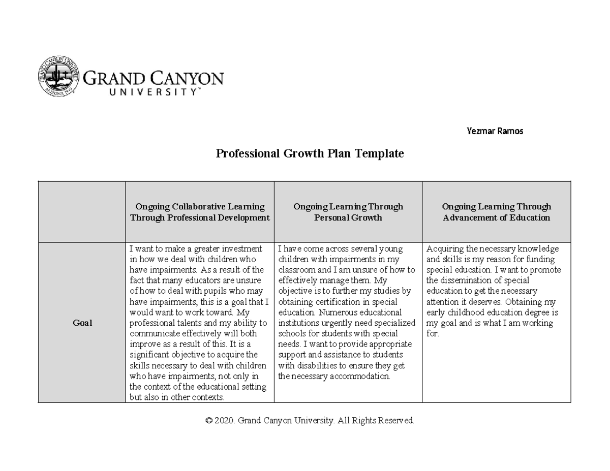 Professional Growth Plan Template Professional Growth Plan Ongoing
