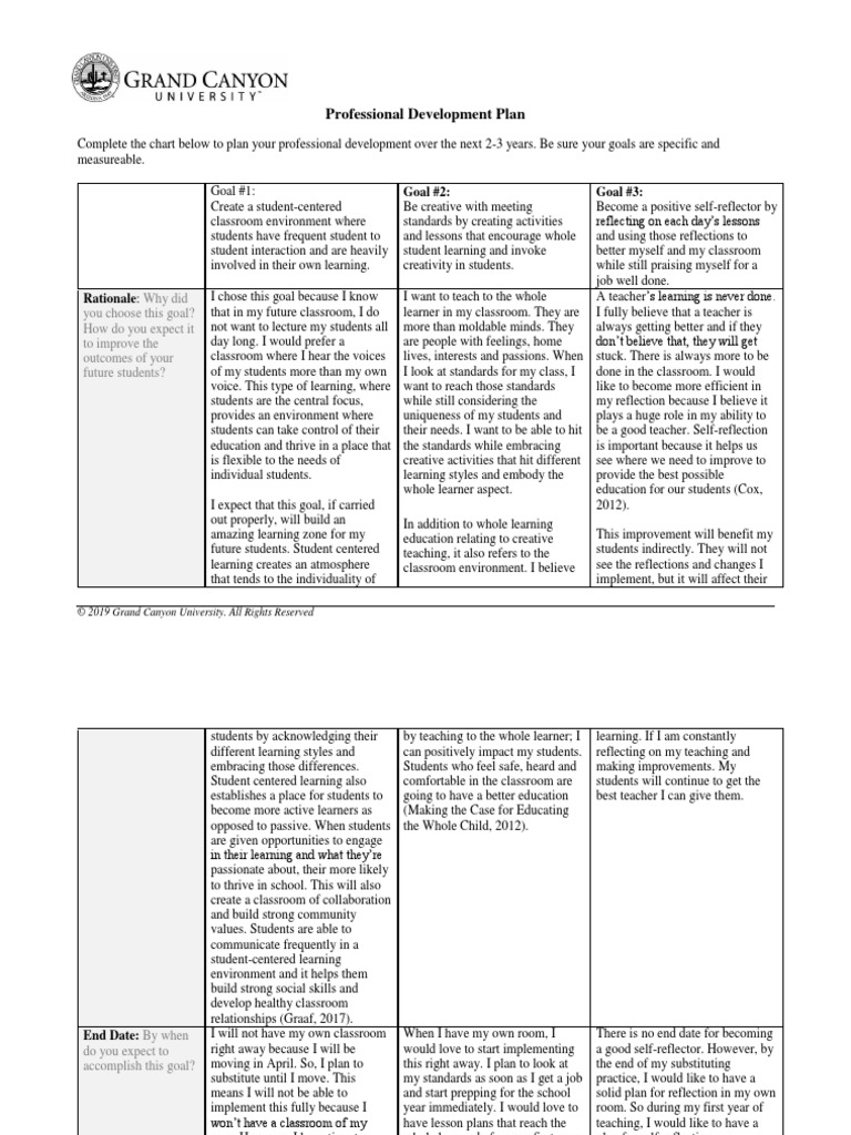 Professional Growth Plan Template For Teachers