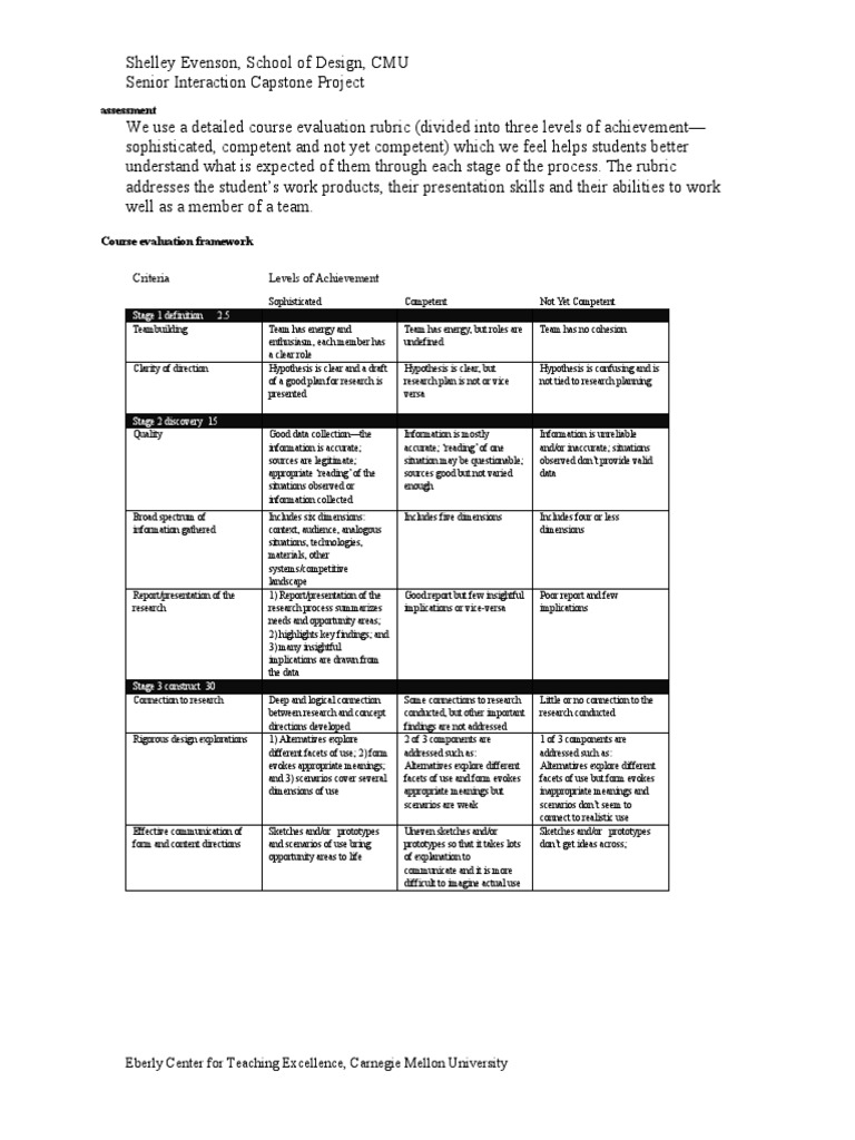 Assessment: Criteria Levels of Achievement PDF Rubric (Academic
