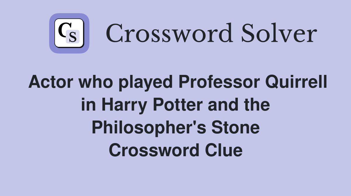 Actor who played Professor Quirrell in Harry Potter and the Philosopher