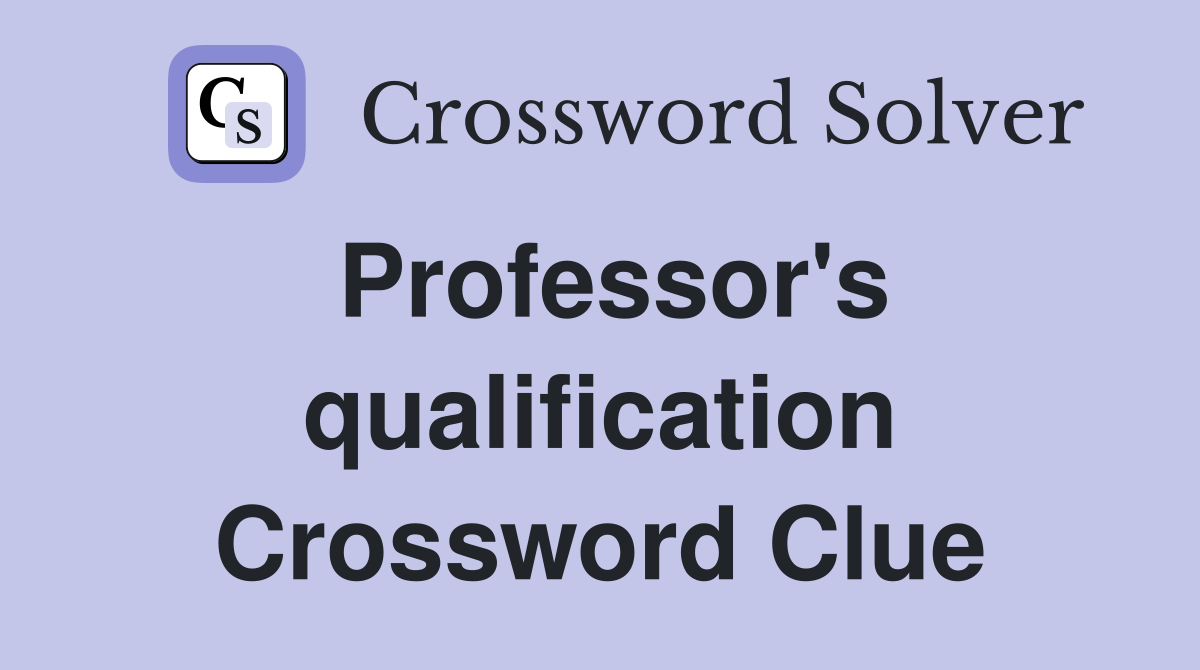 Professor s qualification Crossword Clue Answers Crossword Solver
