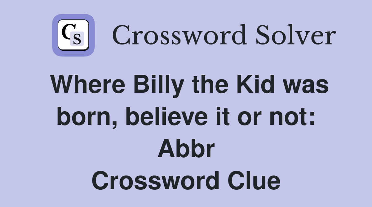 Where Billy the Kid was born believe it or not: Abbr Crossword Clue