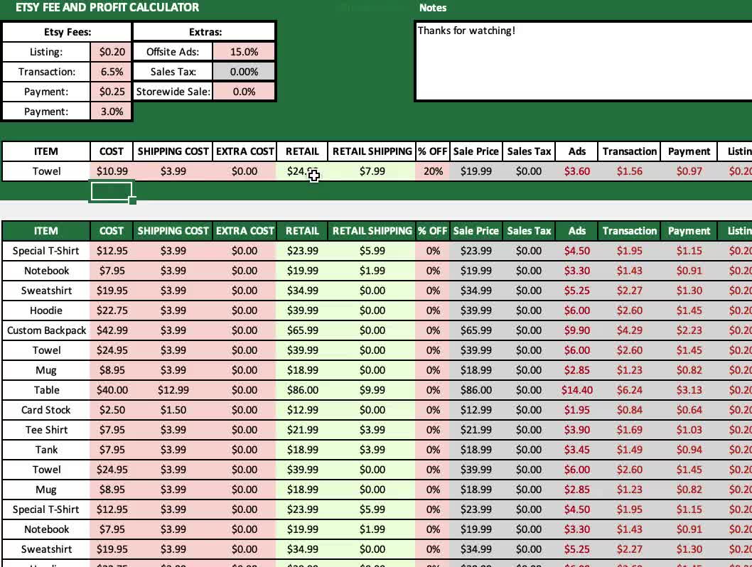 Dropshipping Profit Calculator Excel Template Digital Email Delivery