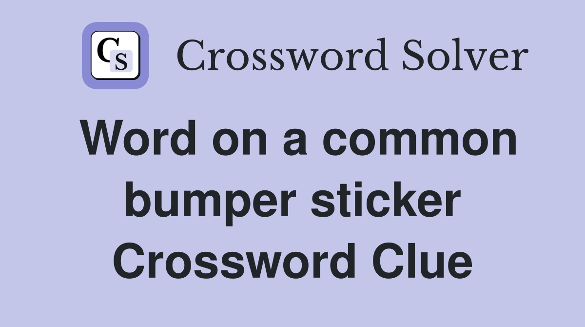Word on a common bumper sticker Crossword Clue Answers Crossword Solver