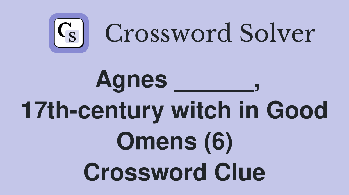 Agnes 17th century witch in Good Omens (6) Crossword Clue