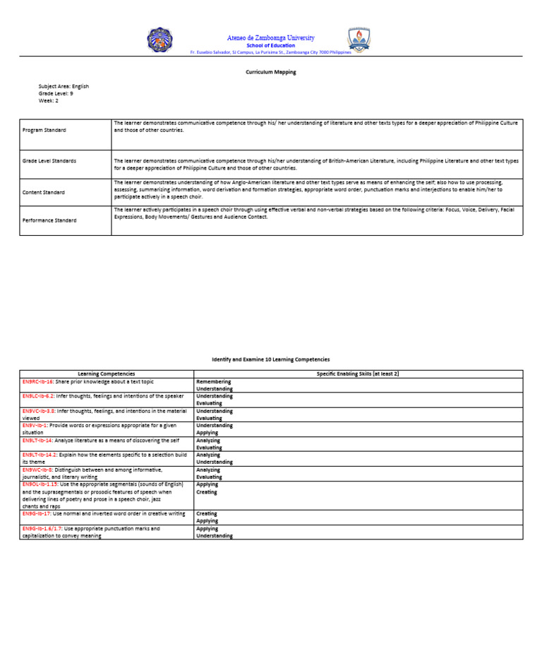 Curriculum Mapping Template and Sample PDF Creativity Curriculum