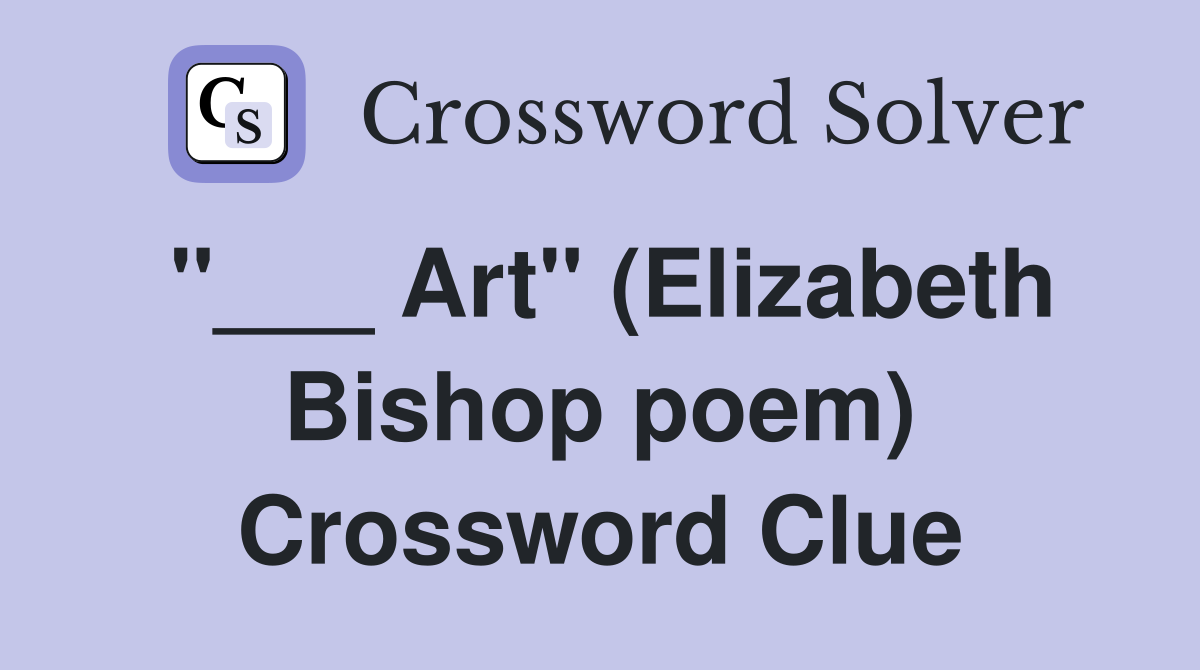 Art quot (Elizabeth Bishop poem) Crossword Clue Answers Crossword Solver