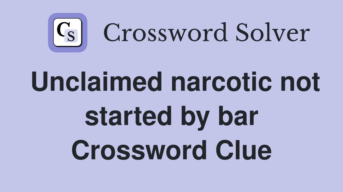 Unclaimed narcotic not started by bar Crossword Clue Answers
