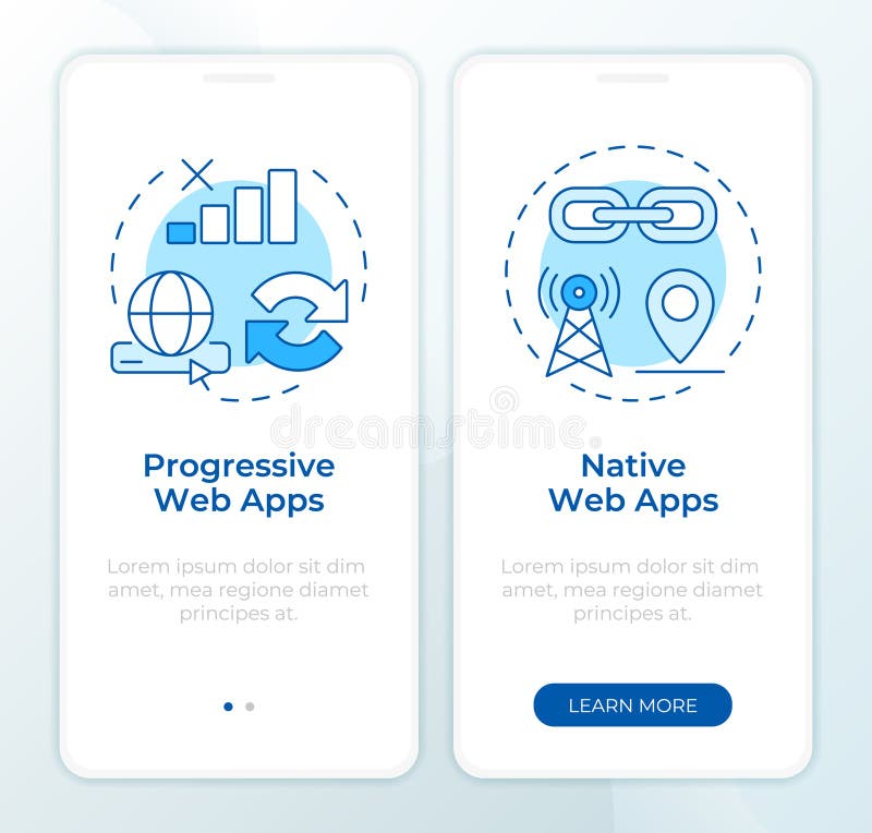 Progressive and Native Web Blue Onboarding Mobile App Screen Stock