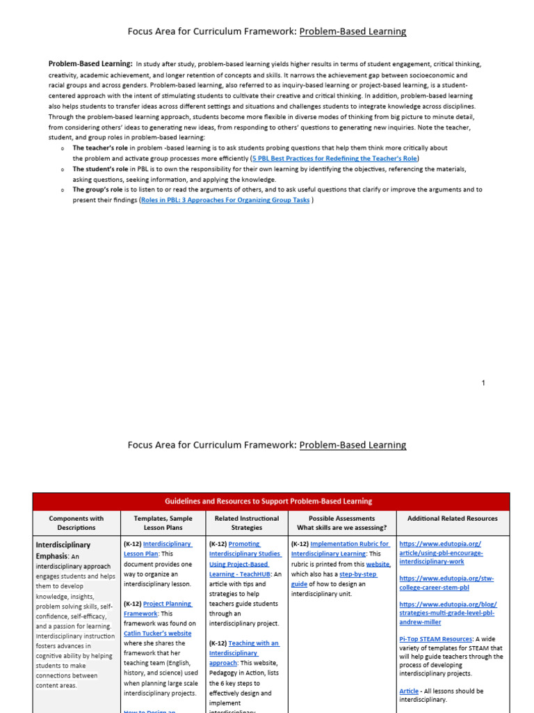 Project Based Learning Planning Pages Example Lesson PBL Project Based
