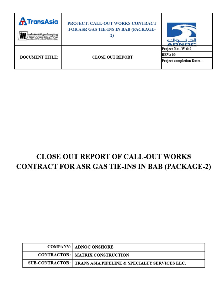 34 2 1501 HSE Project Close Out Report Template PDF Safety