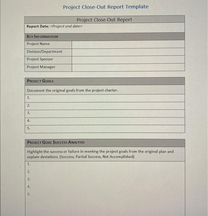 Solved Project Close Out Report Template Project Close Out Chegg com