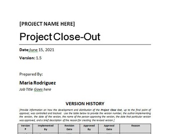 Project Close Out Template