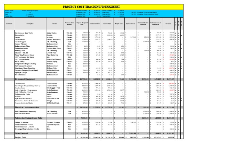Project Cost Tracking Spreadsheet And Free Excel Project Management
