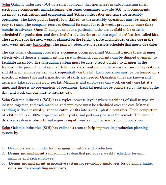 Solved Sohn Galactic industries (SGI) is a small company Chegg com