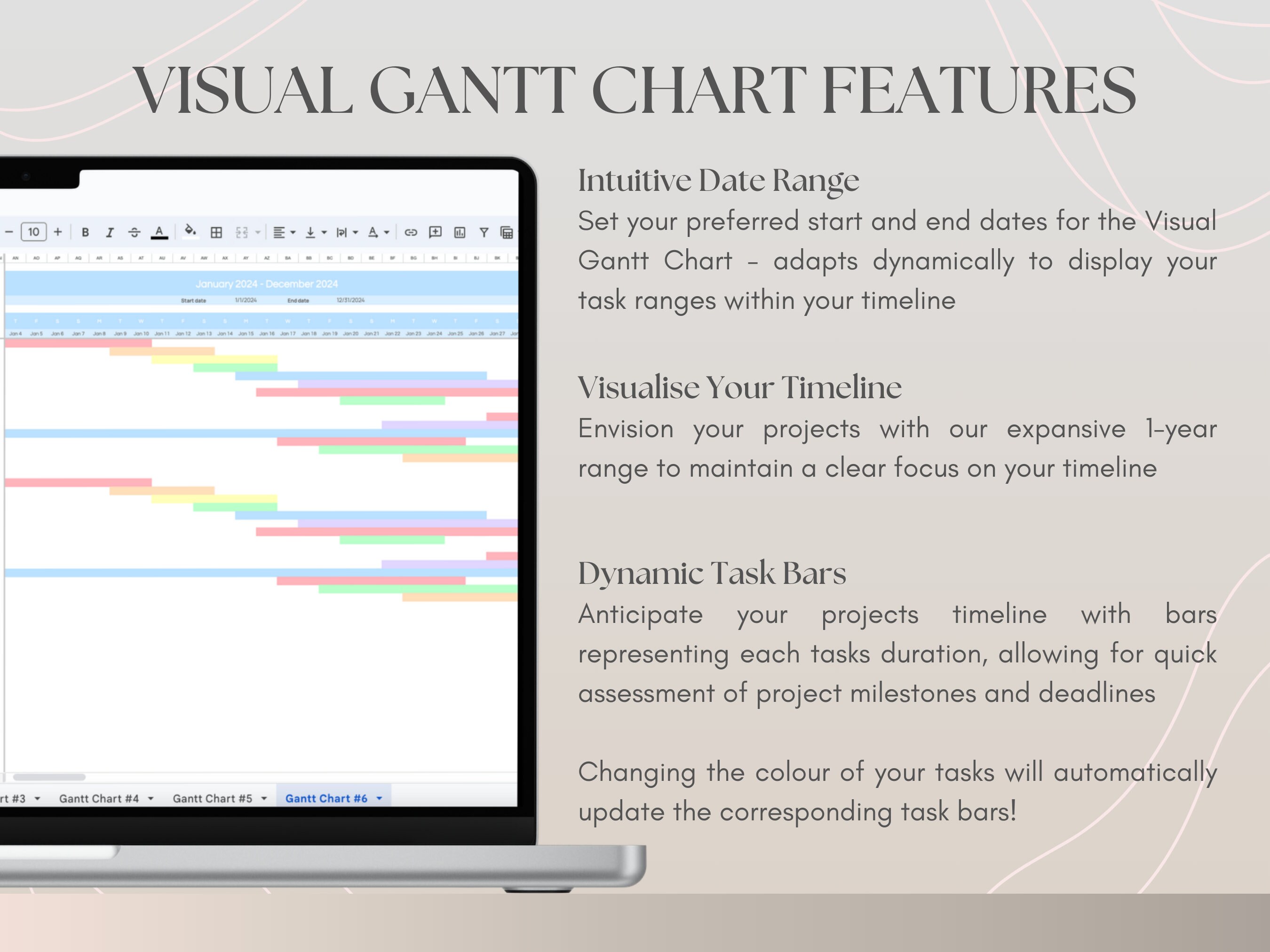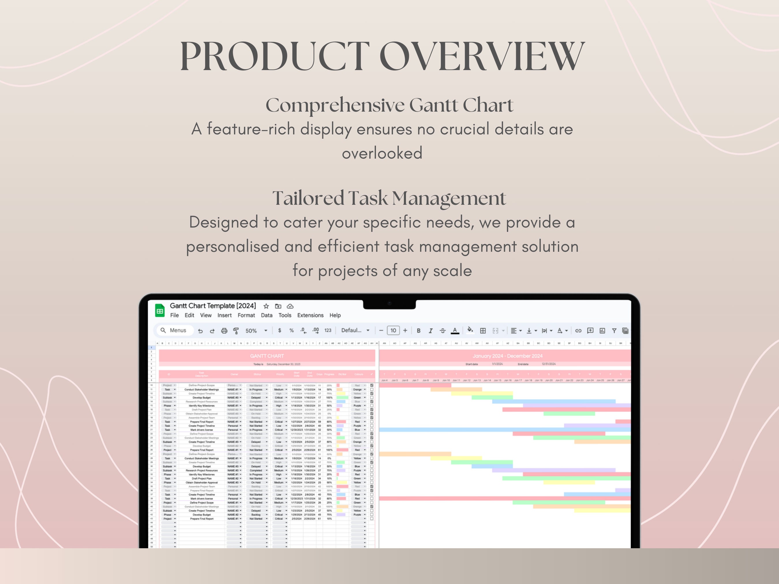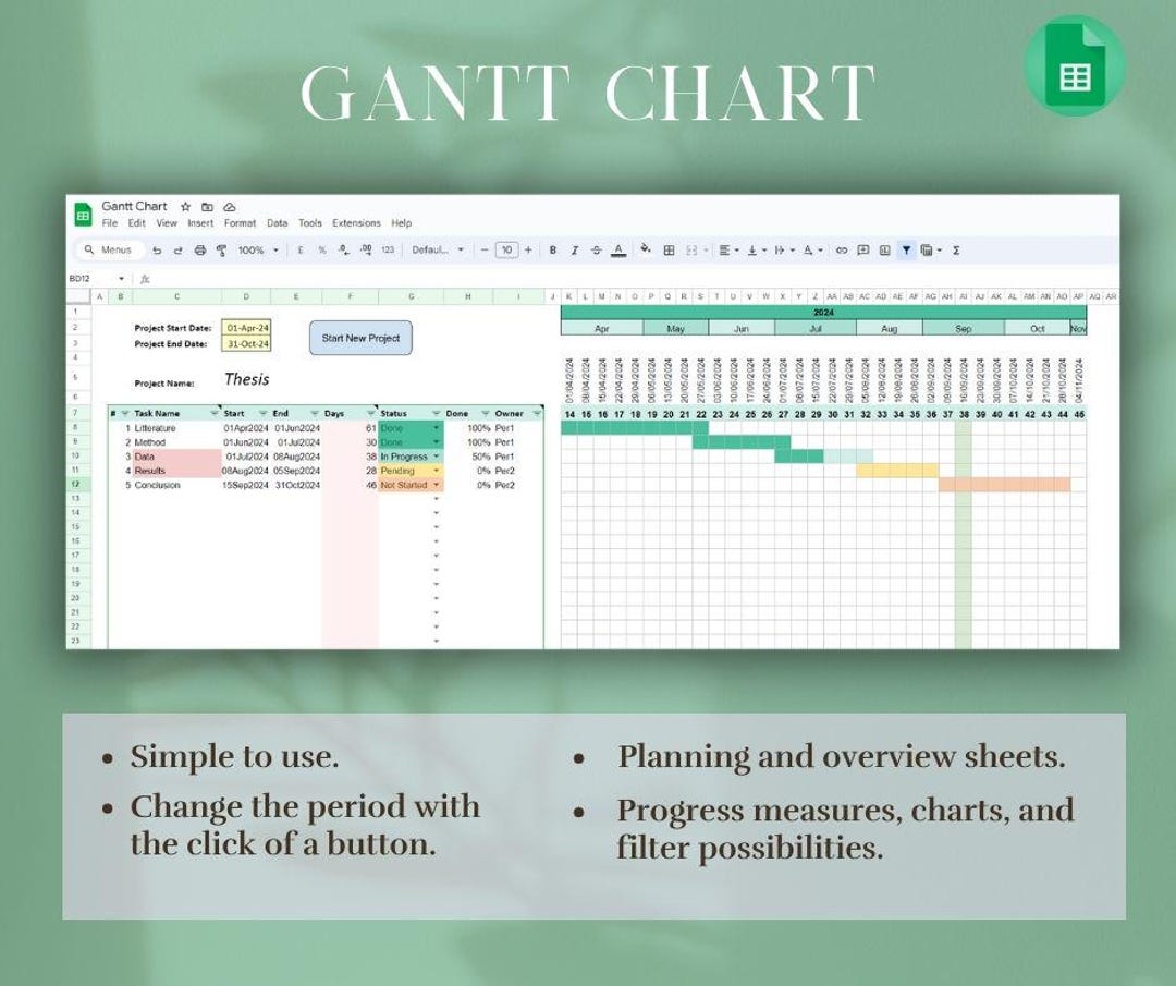 Google Sheets Gantt Chart Template: Project Planner Timeline (digital