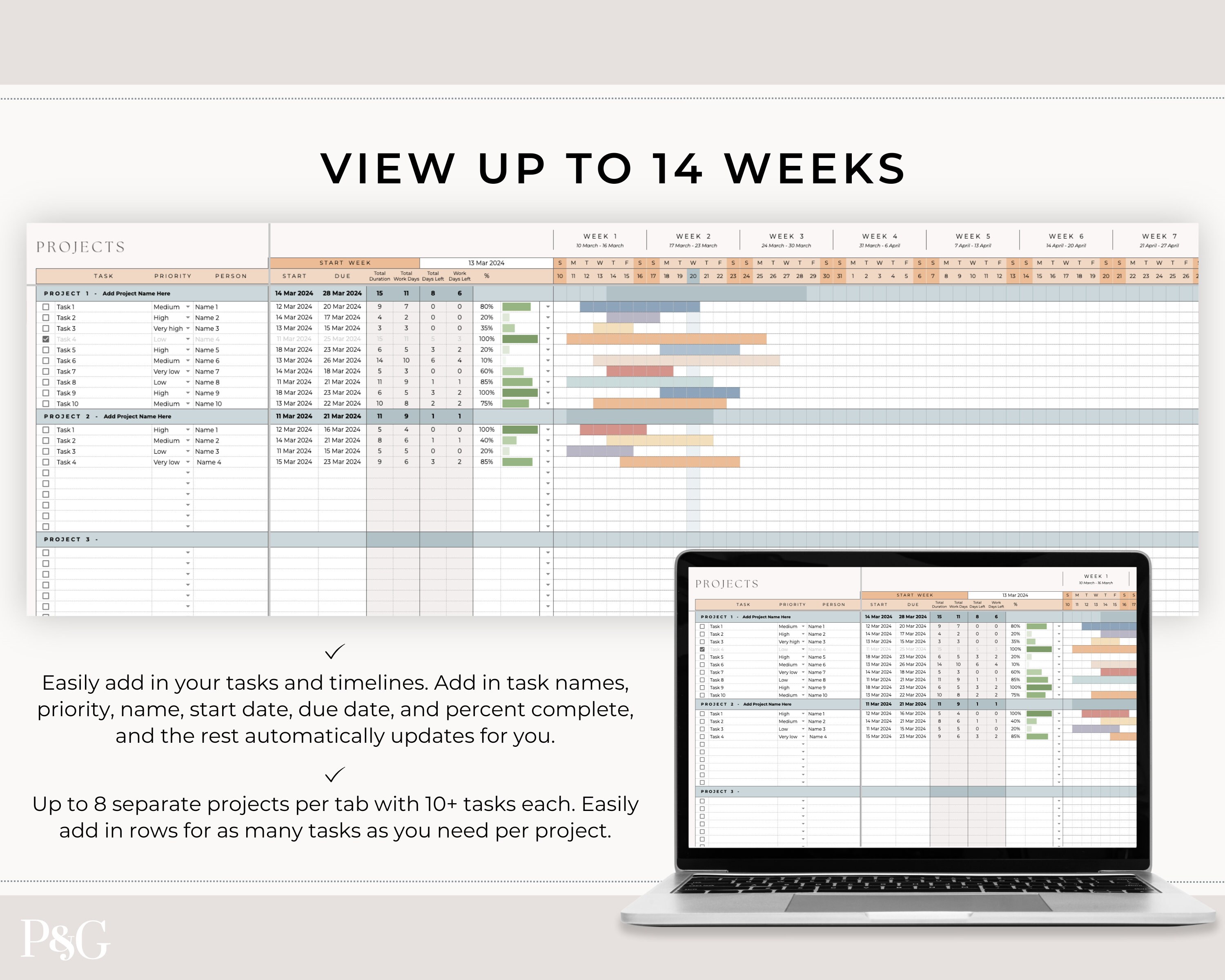 Project Timeline Gantt Chart Template Digital Download Editable