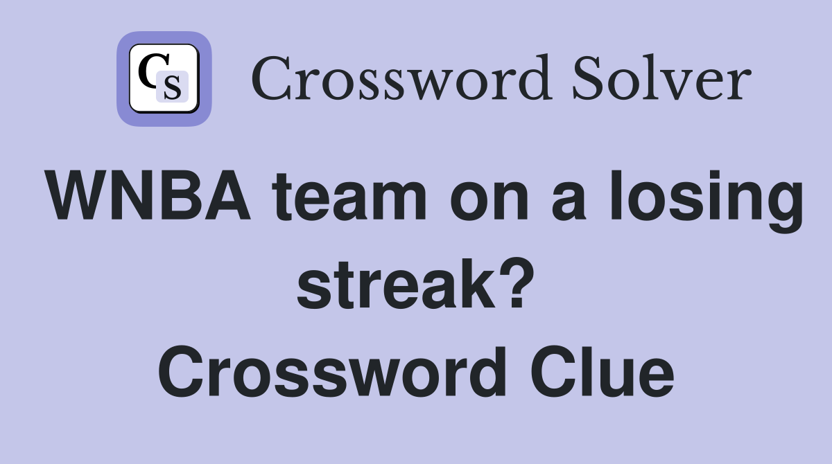 WNBA team on a losing streak? Crossword Clue Answers Crossword Solver