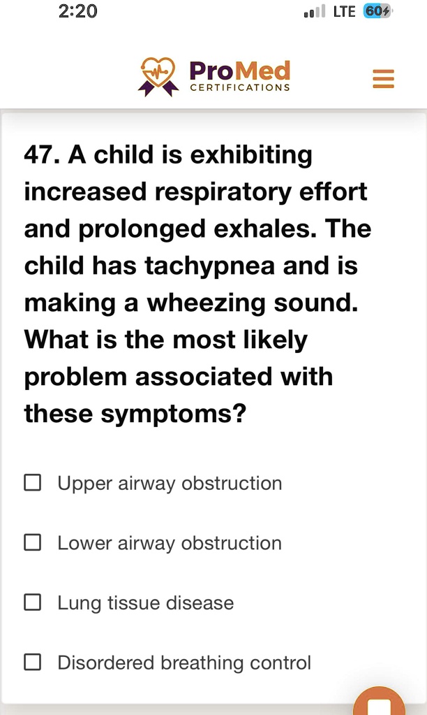 VIDEO solution: 2:20 1 LTE 604 ProMed CERTIFICATIONS 47 A child is