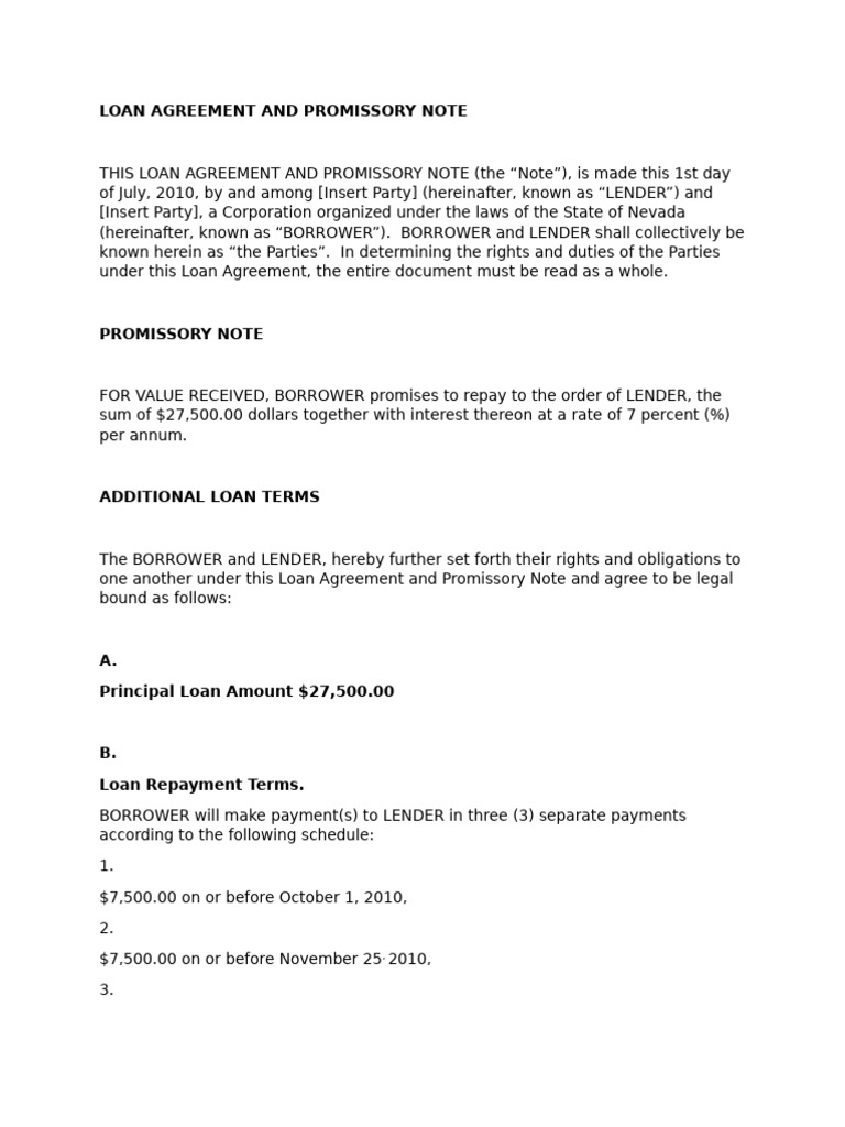 Loan Agreement Promissory Note PDF Loans Interest