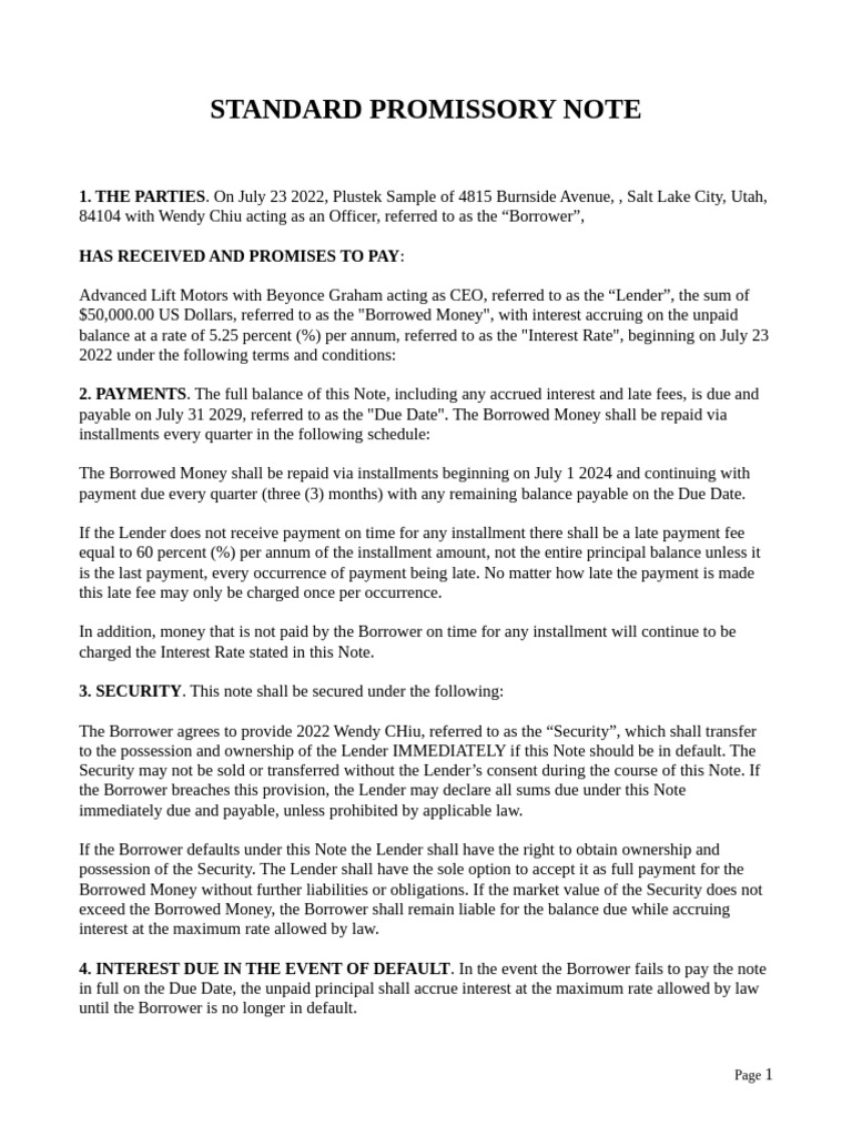 Promissory Note Template