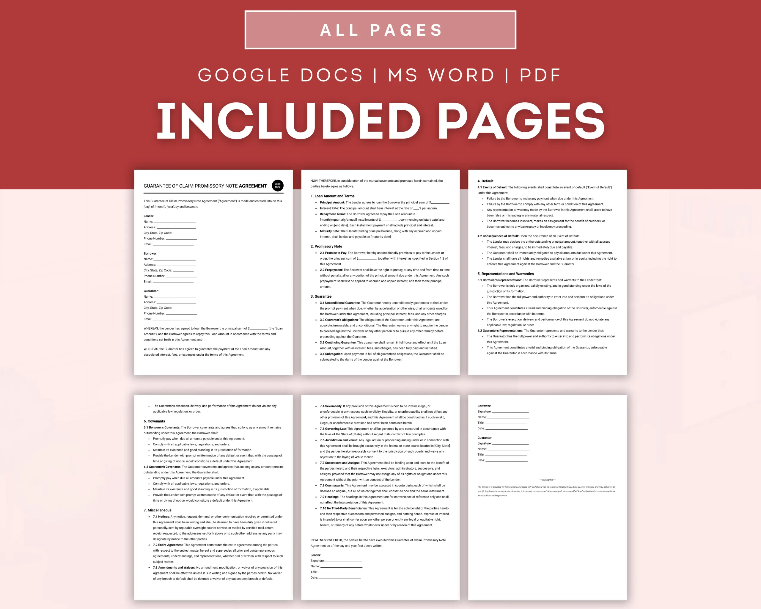 Guarantee Of Claim Promissory Note Agreement Template ProBizTemplates