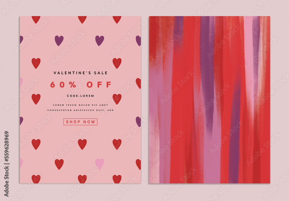 Valentine #39 s Sale Promo Card Template with Hearts Stock Template Adobe