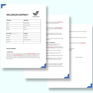 Social Media Influencer Contract Agreement Template Professional