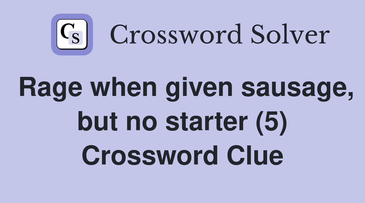 Rage when given sausage but no starter (5) Crossword Clue Answers
