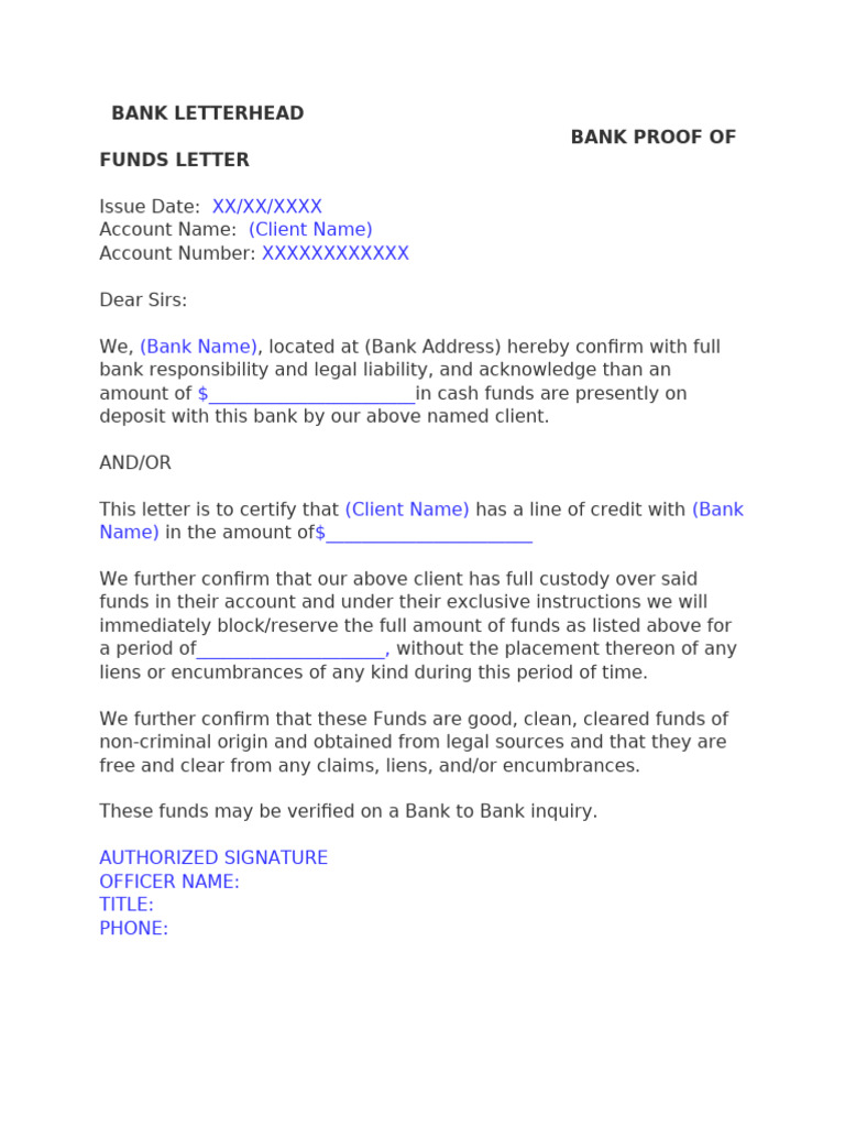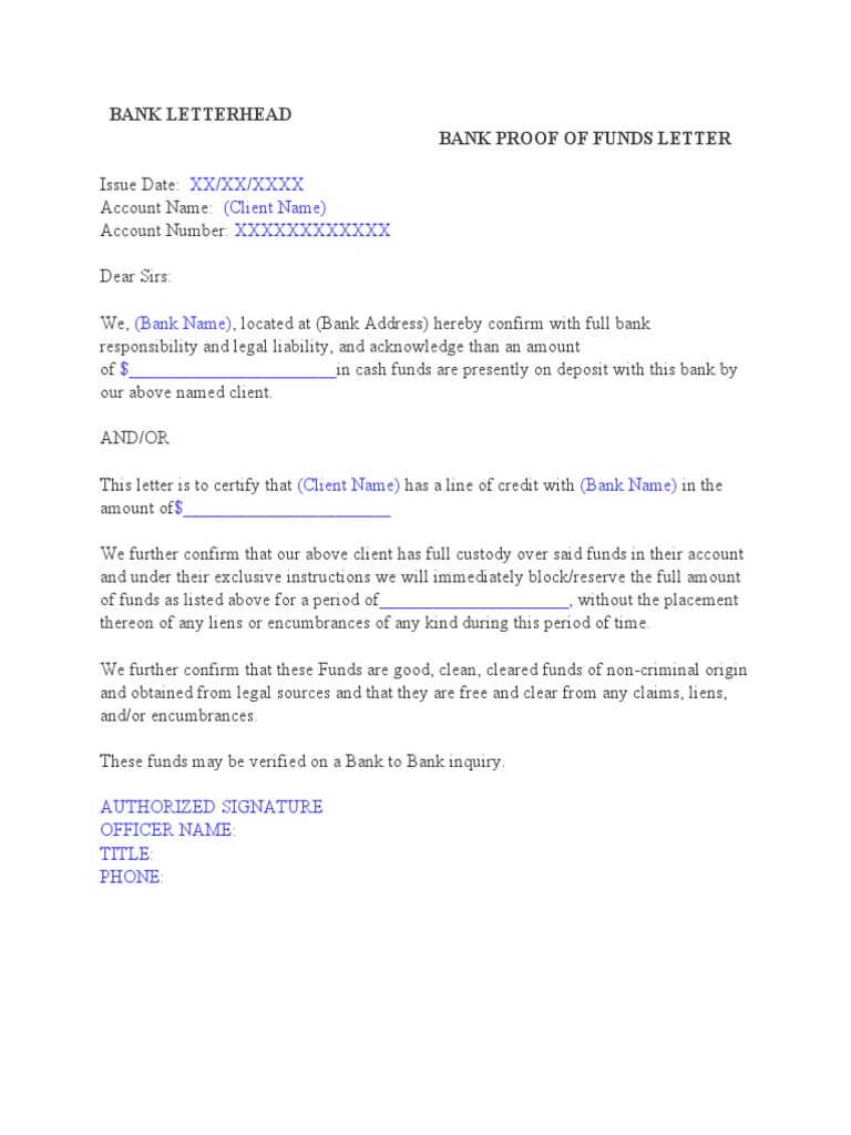Proof Of Funds Letter Template