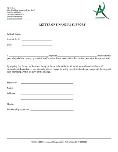 Letter Of Financial Responsibility Template