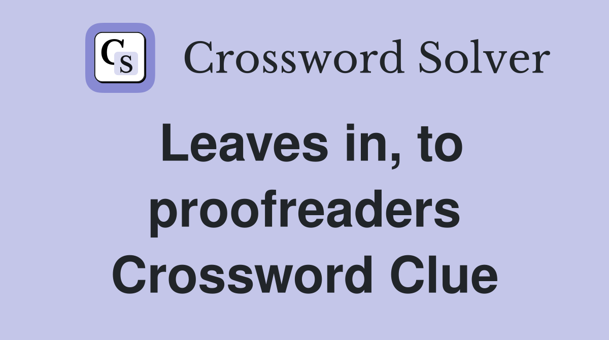 Leaves in to proofreaders Crossword Clue Answers Crossword Solver