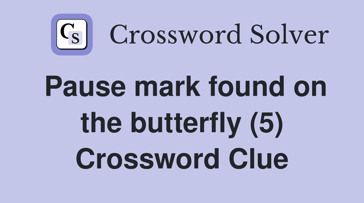 Pause mark found on the butterfly (5) Crossword Clue Answers