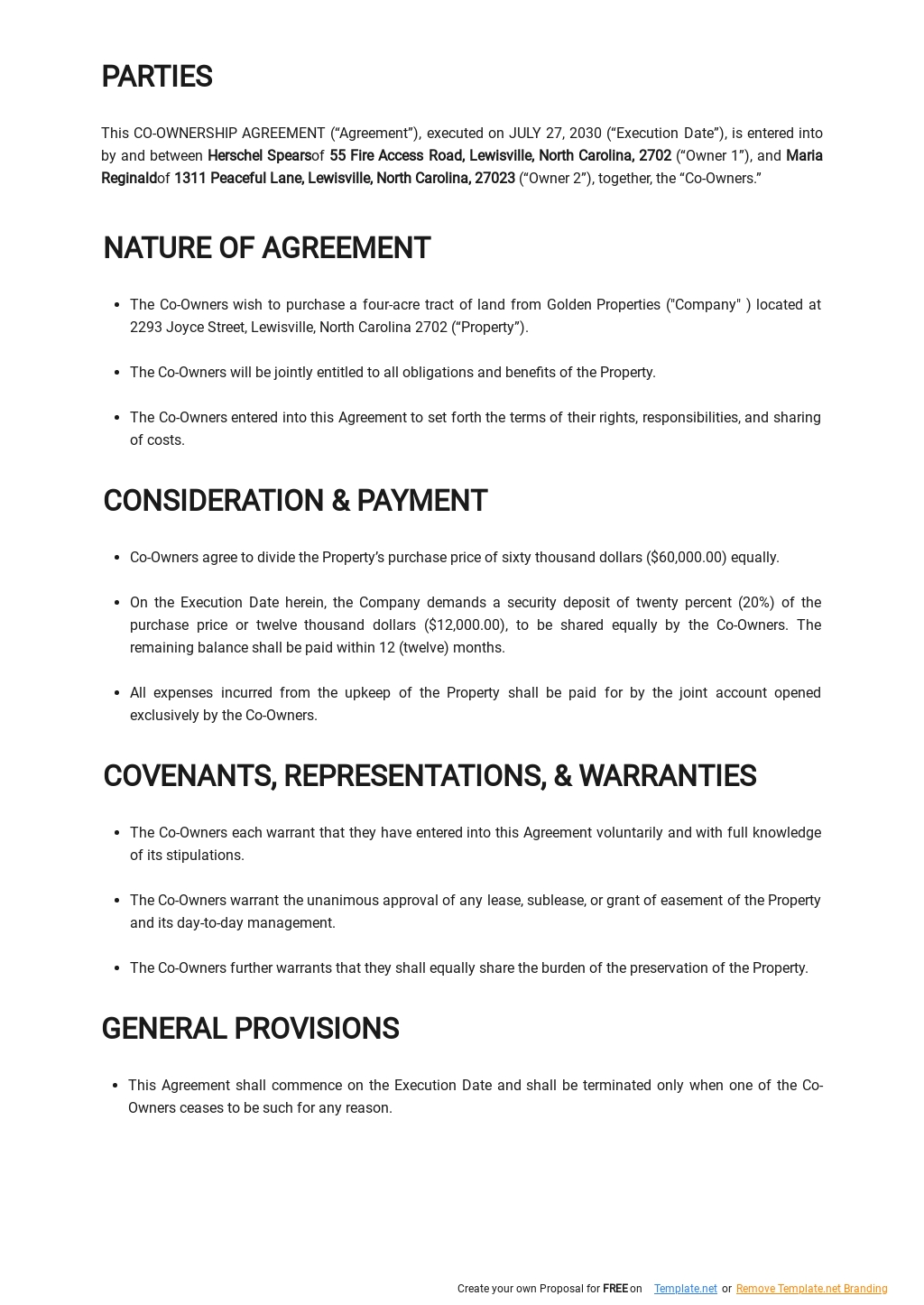 Here are some of the images for Property Co Ownership Agreement Template that we found in our website database.