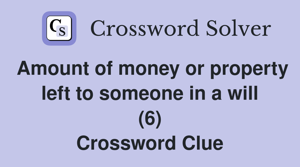 Amount of money or property left to someone in a will (6) Crossword