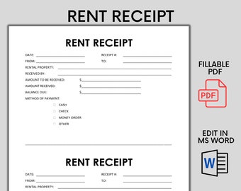 Rent Receipt Rental Receipt Receipt Template Landlord Rent Etsy