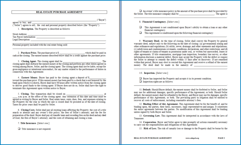 Free Printable Real Estate Purchase Agreement Templates Word PDF