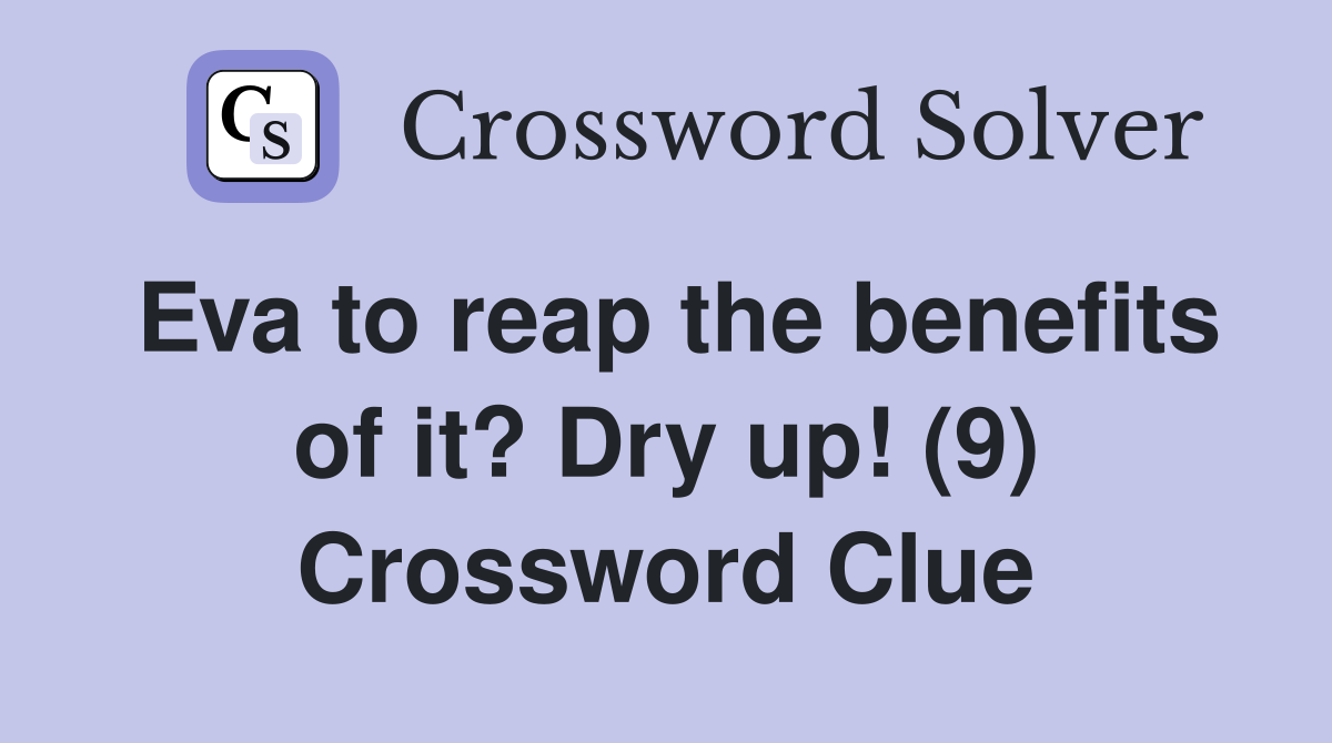 Eva to reap the benefits of it? Dry up (9) Crossword Clue Answers