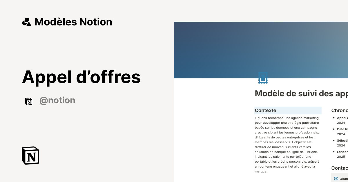 Appel d offres Modèle créé par Notion Marketplace Notion