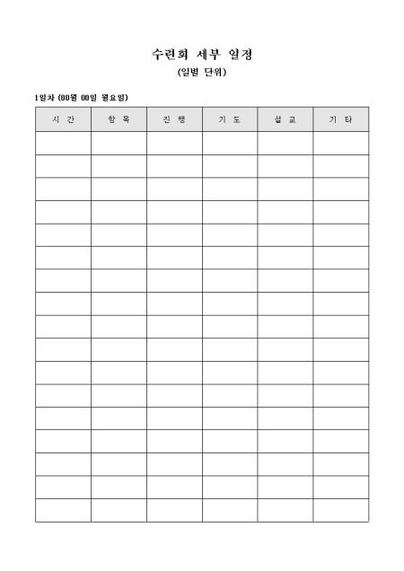 교회 수련회 세부 일정표(일별) 샘플 양식 다운로드