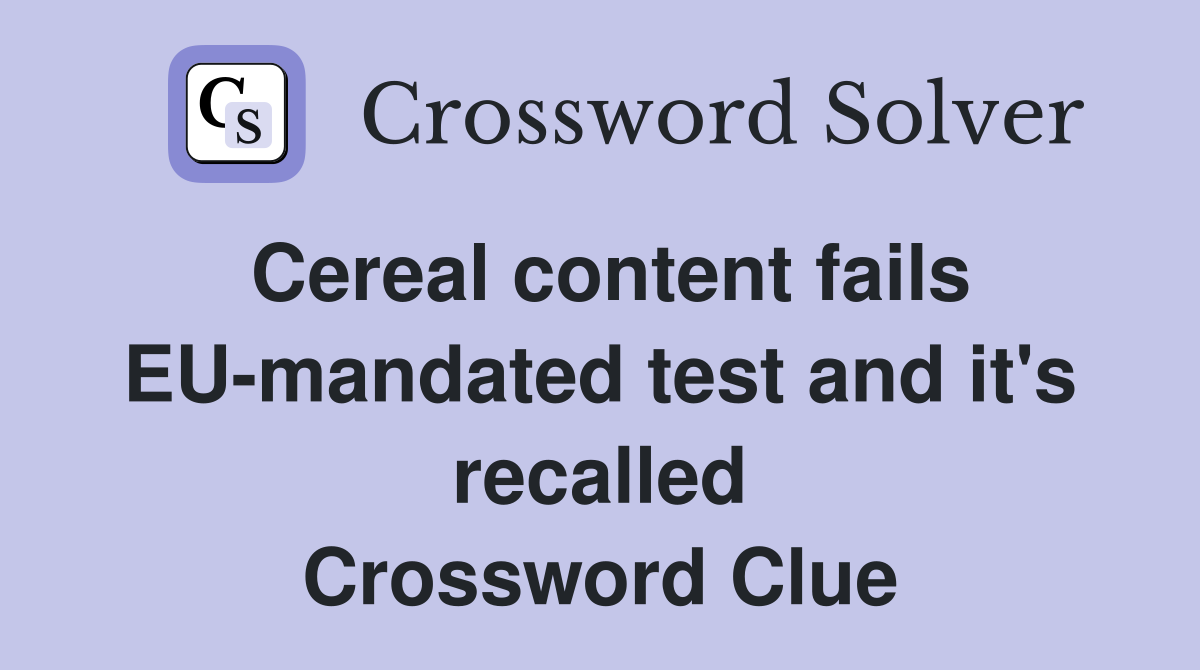 Cereal content fails EU mandated test and it #39 s recalled Crossword