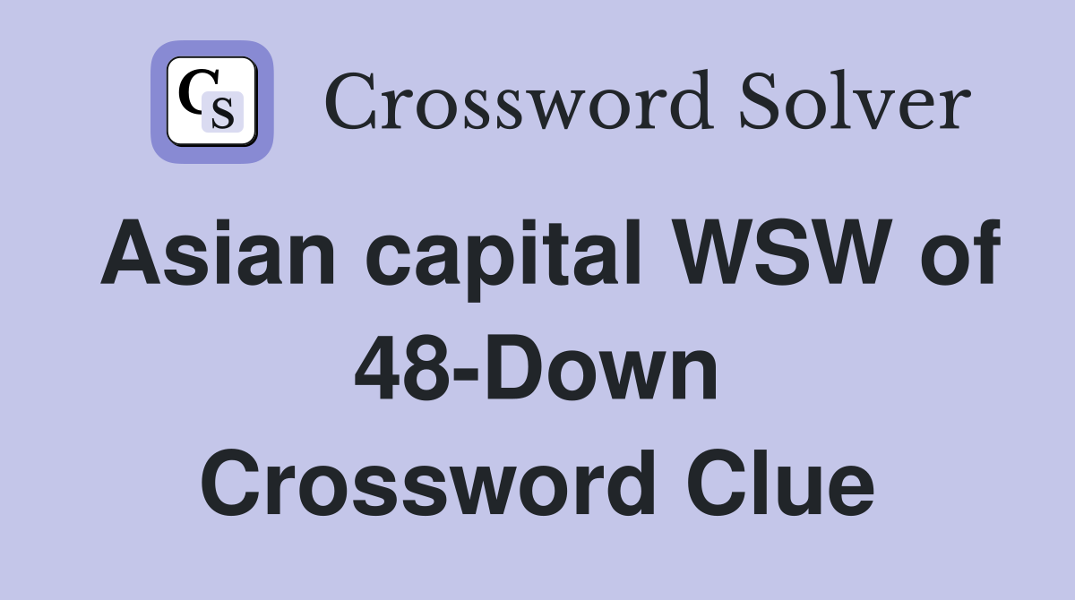 Asian capital WSW of 48 Down Crossword Clue Answers Crossword Solver