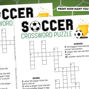 Soccer Crossword Puzzle / Printable Soccer Team Party Games / Soccer