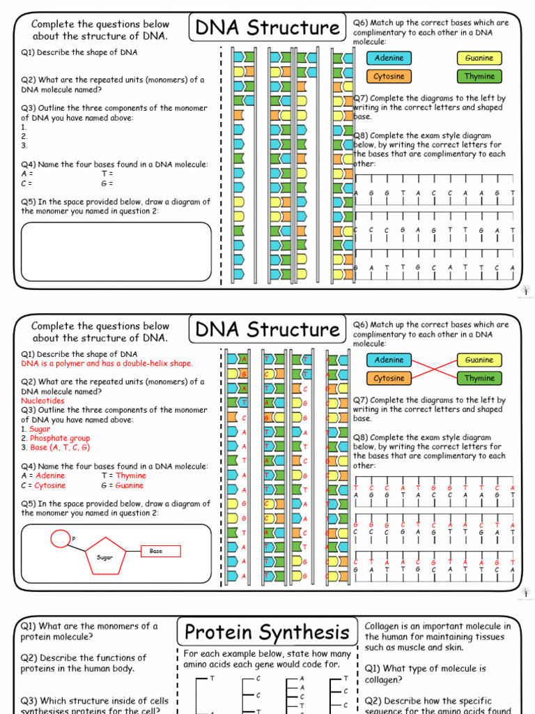 DNA Structure and Protein Synthesis Simple Science Worksheets PDF